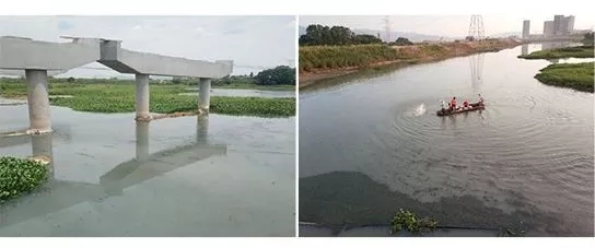 (微生物環保黑臭水體處理技術示范河道治理前后對比)