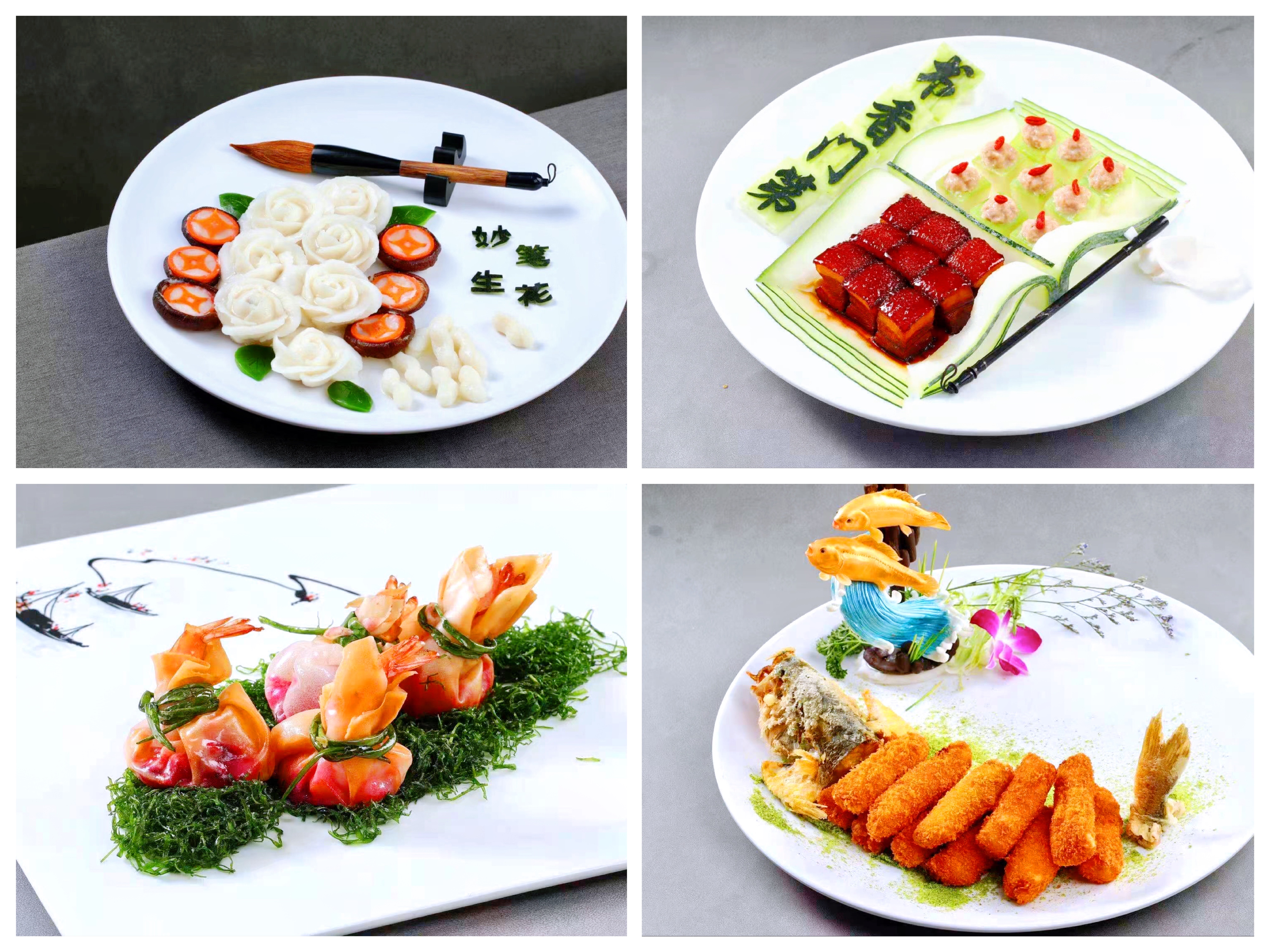 “書香門第”“妙筆生花”“仙鶴銀針”“袋袋有余”......一道道菜品在廚師的巧手精心下化為一道道藝術品,玲瓏別致的造型下是值得細細品味的內涵,色香味俱佳,令人大飽口福、眼福,受到評委的高度肯定。