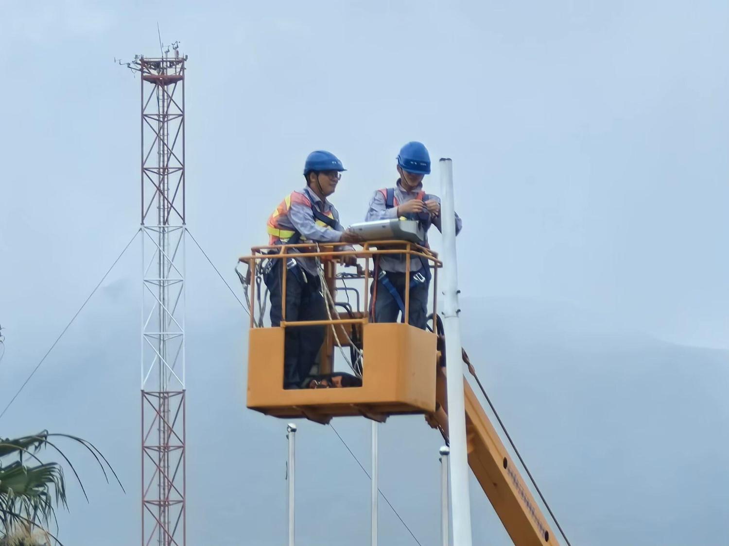 為確保路燈設(shè)備安全穩(wěn)定,大亞灣班組的鄔偉明和歐陽海飛正利用高空作業(yè)車檢修路燈線路。他們仔細(xì)檢查每一盞路燈,排查故障點(diǎn),并及時(shí)對出現(xiàn)故障、照明效果不佳的路燈及破損的線路進(jìn)行維修更換,進(jìn)一步提高大亞灣主次干道路燈的亮燈率和完好率,確?;氐缆氛彰髟O(shè)施安全運(yùn)行,方便職工出行。