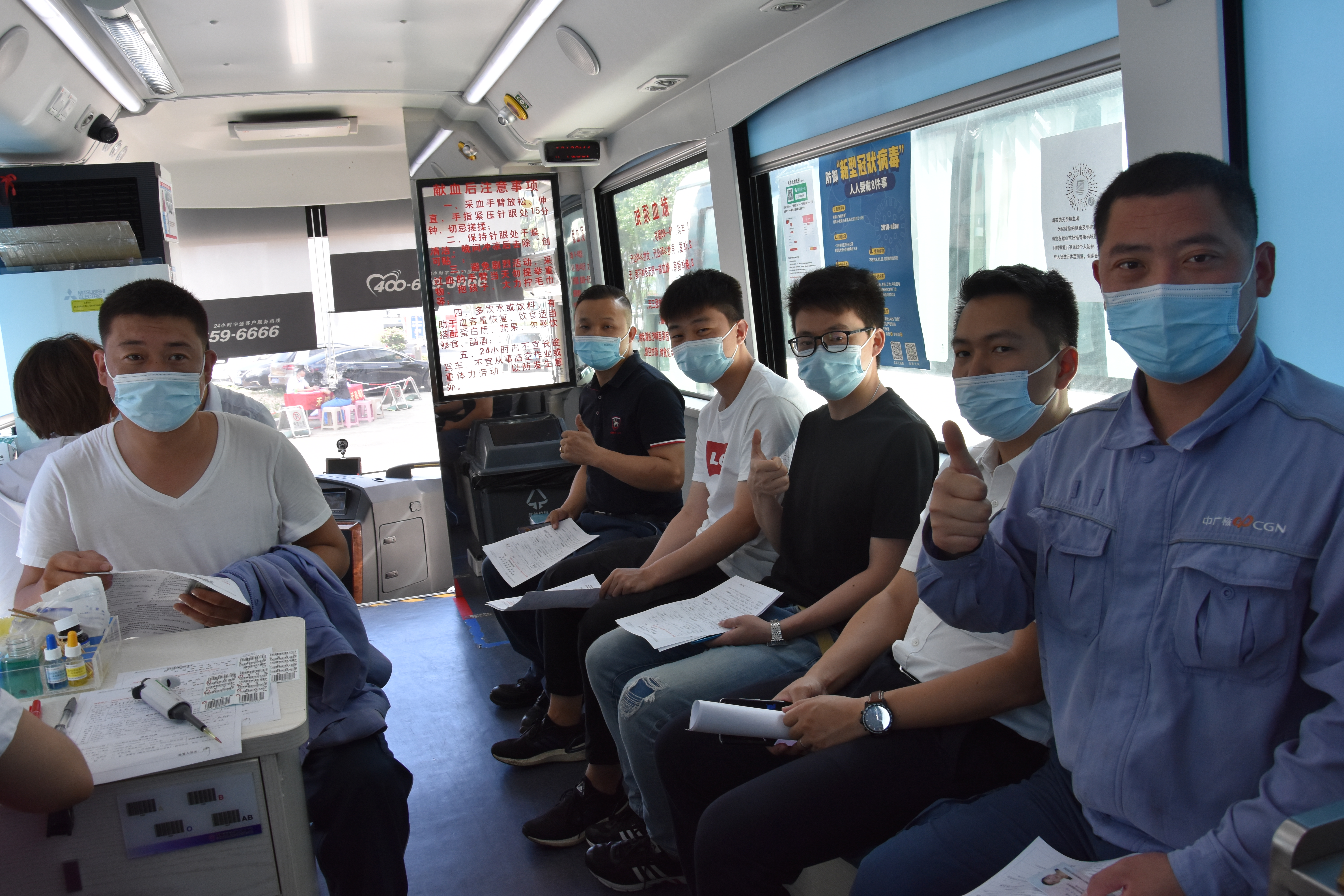 5月11日,在大亞灣核電基地,中廣核服務集團組織員工開展無償獻血,來自機電公司、東部分公司、環通公司、園林公司、白鷺健康公司的員工紛紛加入獻血隊伍,獻出自己的一份愛心,在深圳市龍崗區中心血站工作人員的指引下,填表、化驗、等候、抽血,現場井然有序,愛心涌動。